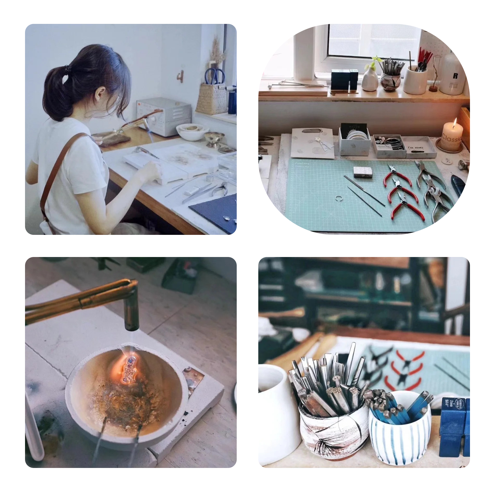 Here we have divided it into four parts: In the first picture, we can see that our handicraft aunt is setting diamonds by hand.