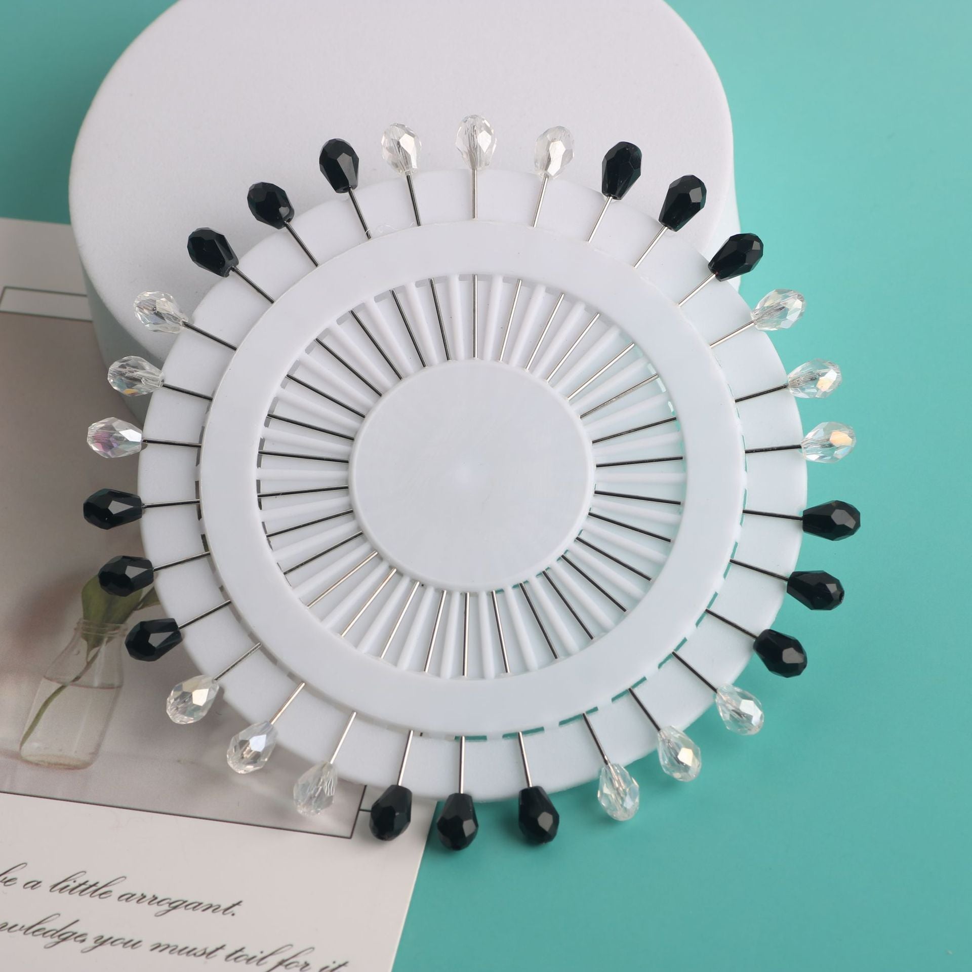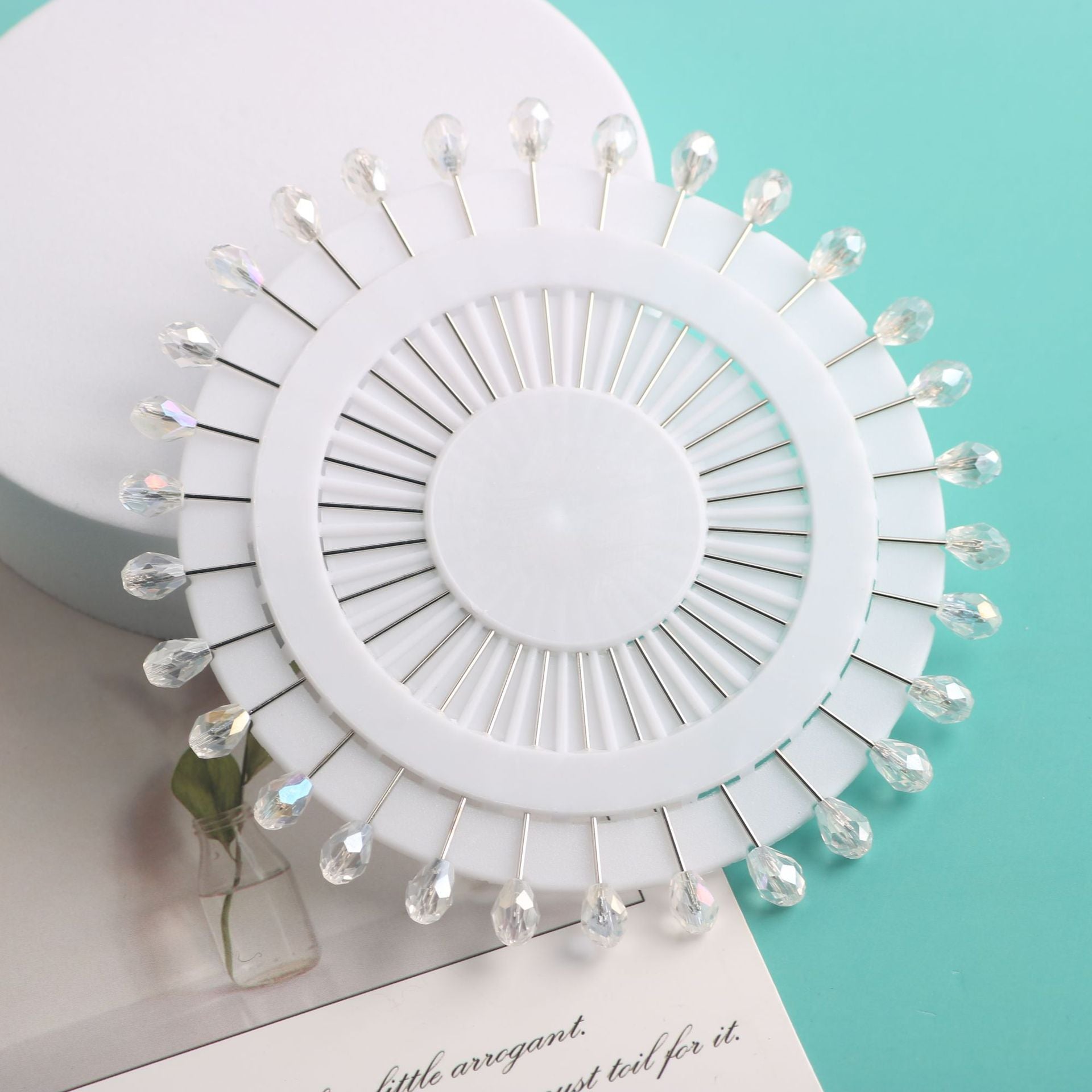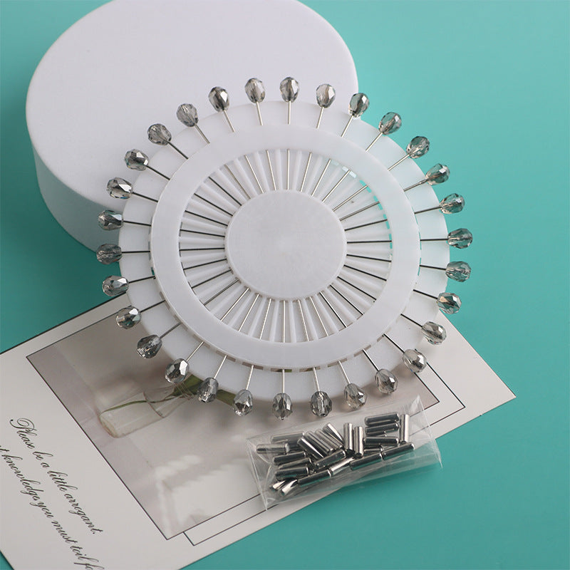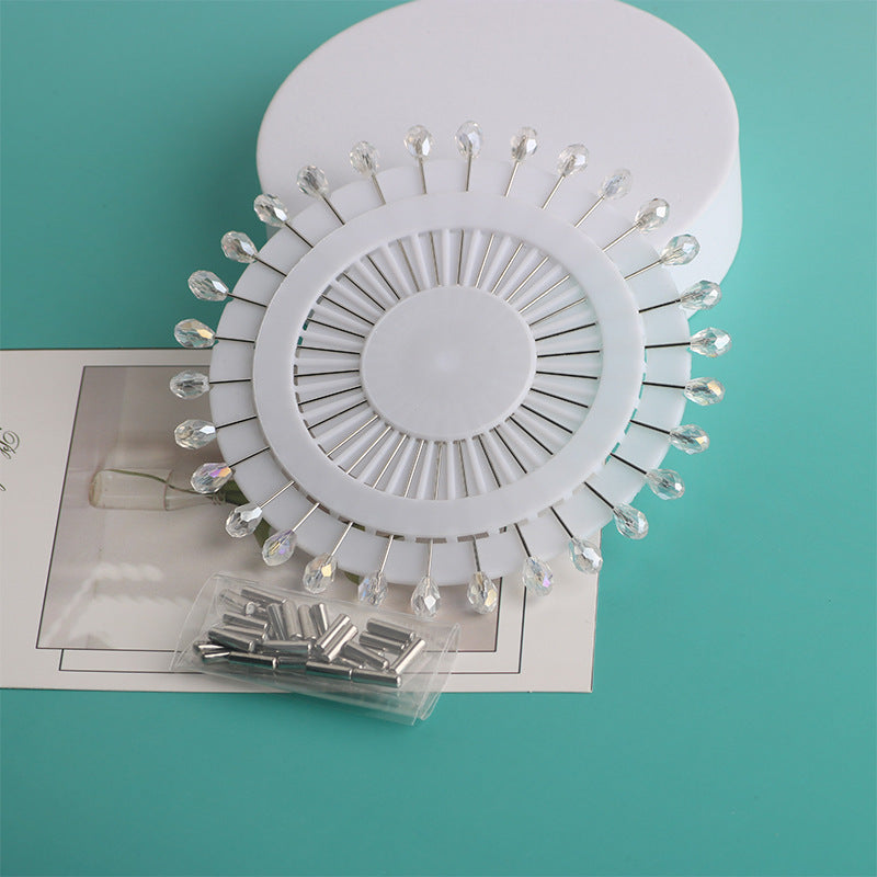 Cross-border B2B wholesale, fashionable crystal disc, colorful positioning bead pins, pin fixing accessories, versatile clothing, scarf hijab pins, scarf pins, Muslim positioning bead pins