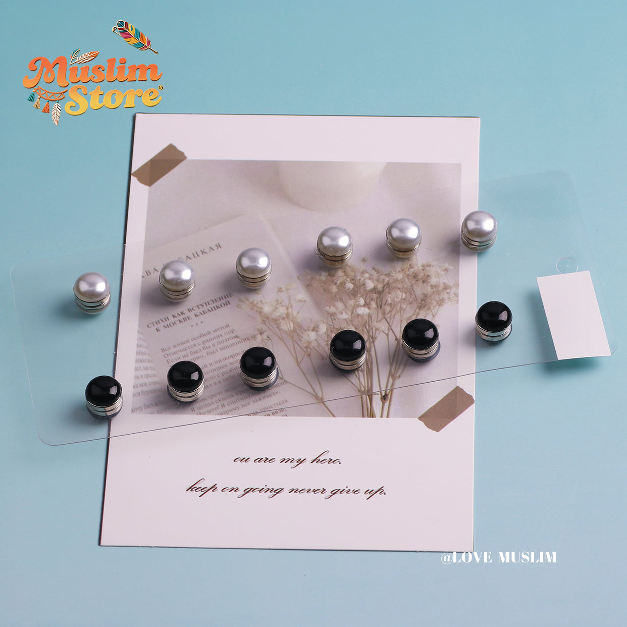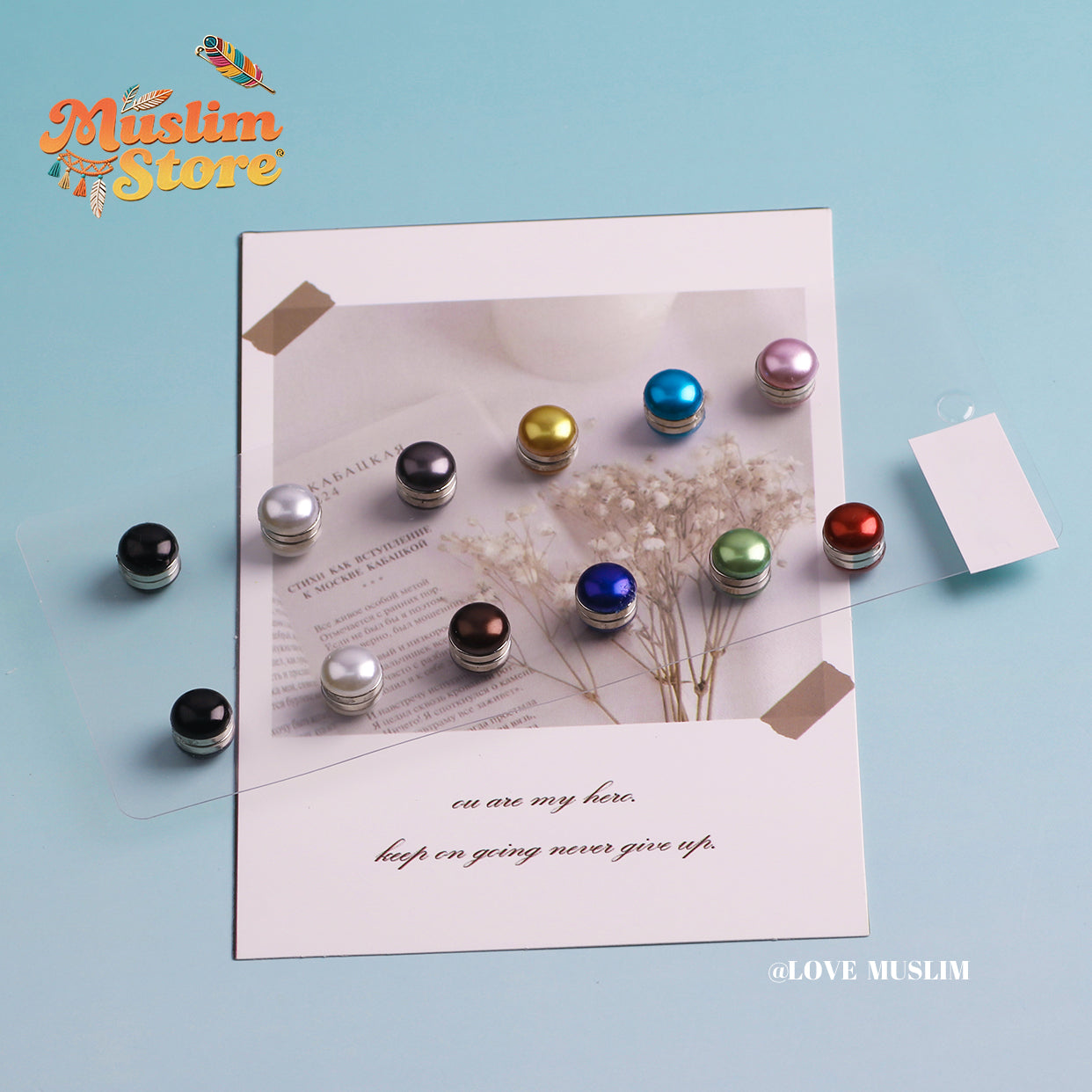 Cross-border B2B wholesale, flat pearl silk scarf buckle, headscarf magnetic buckle, women's high-end light luxury, round handmade multi-color, Muslim headscarf magnetic buckle